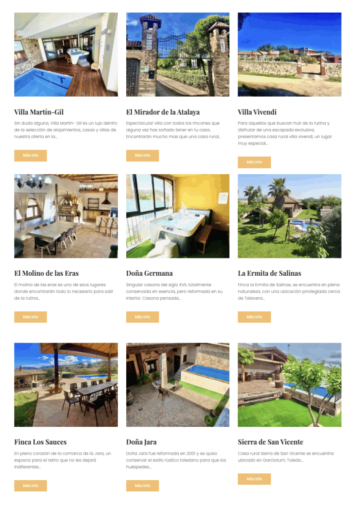 Contamos como partner con CASAS VITUR una de las empresas más potentes de alojamientos rurales de la provincia de Toledo, que nos ofrecen nada más y nada menos que 17 casas rurales para grupos en la zona de Pepino y pueblos aledaños.